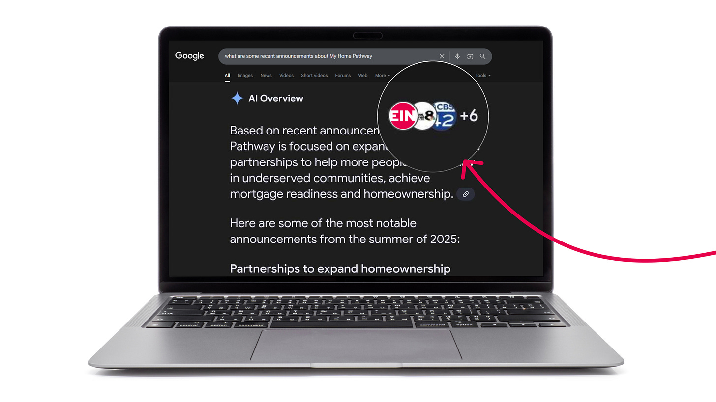 AI Visibility – By consistently using press releases, company announcements appeared in AI search results, pulling information from the releases.